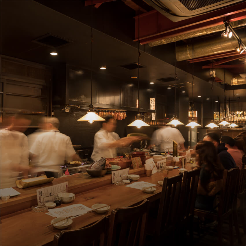• お客様の目の前で調理して、接客して、楽しませる「街で一番楽しいお店」!